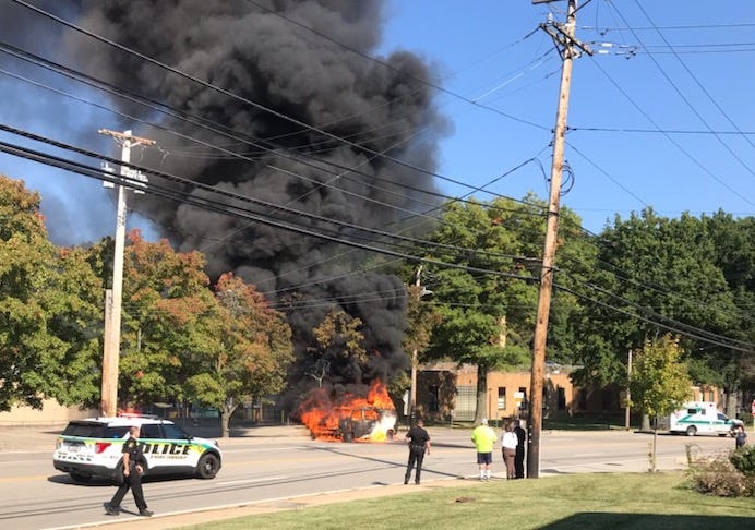 When I got off the Highland Park Bridge and started driving down 28 towards the Fox Chapel exit, I could smell the smoke and there was a slight blue haze in the valley. I couldn’t see the van until I got off the ramp, was re-routed through that small shopping center's parking lot, parked and got out of the car. Brian walked towards me and was truly, truly fine. Completely and totally fine! We walked over to look at the burnt out smoking van together and stood there just staring at it. We had to keep looking at it because it was so unbelievable. If we looked away, we might begin to doubt it happened.